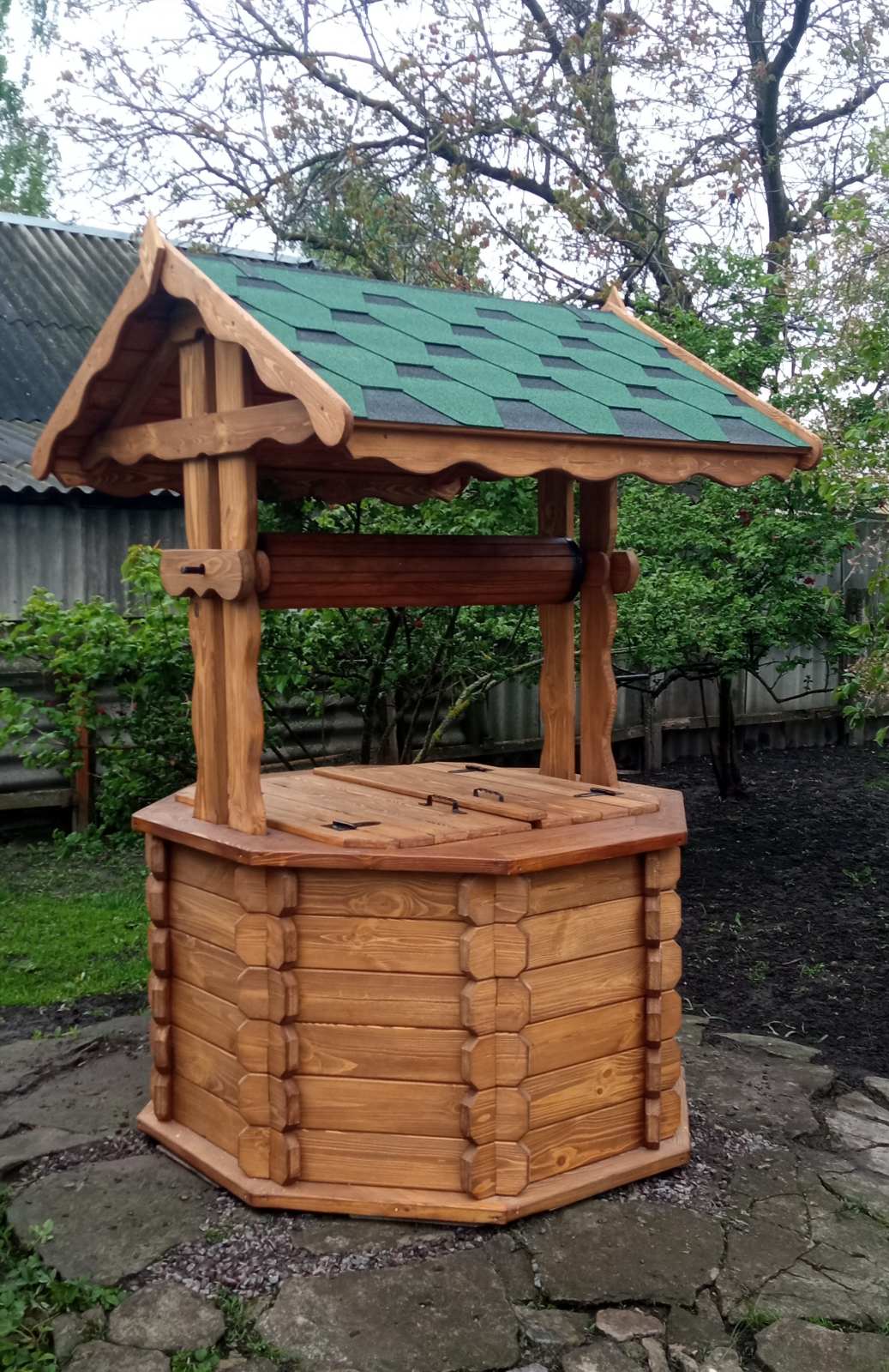 Очеретянна покрівля , колодязь з дерева, качеля
